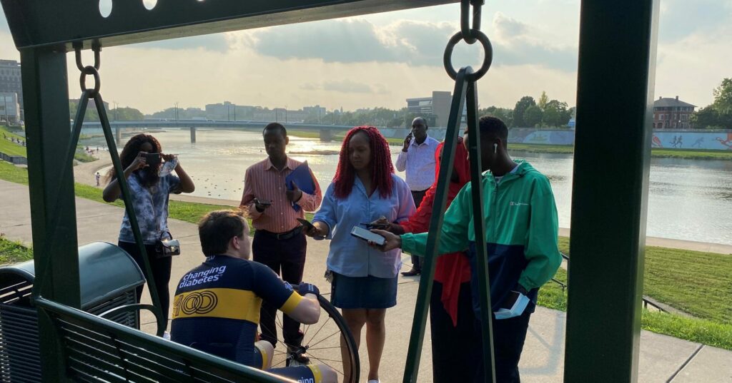 Mary Evans, our talented colleague and friend, passed away suddenly in June 2025. Mary’s reporting talents are known to all in the Miami Valley, with much of her important work highlighting the challenges facing returned citizens featuring on WYSO. At the Journalism Lab, she worked tirelessly to share her skills with young people, regularly appearing in schools and colleges around Dayton and beyond. Read Journalism Lab co-founder Nick Hrkman’s eulogy to Mary here.